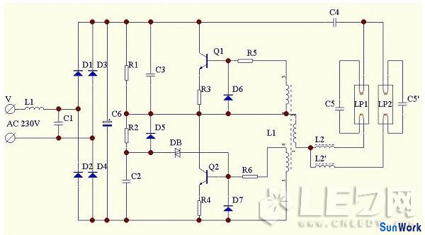 雙管節(jié)能燈電路原理圖