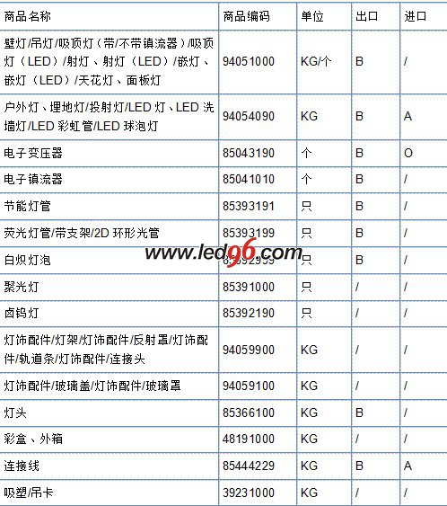 • 最新LED燈具海關(guān)編碼
