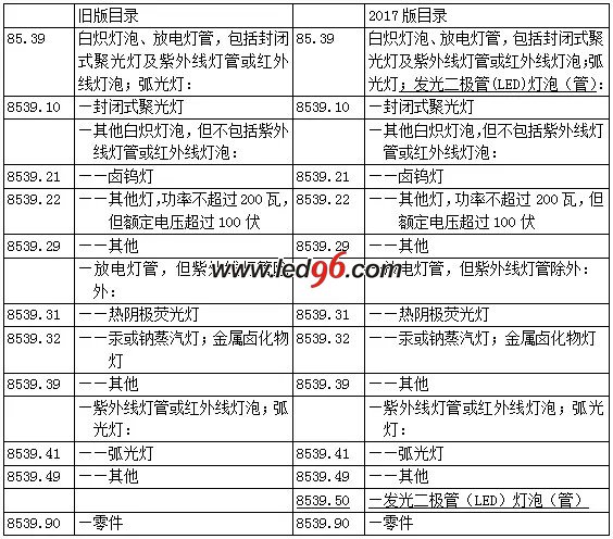 2017年1月1日生效。在新版的《協(xié)調(diào)制度》目錄中,第八十五章,注釋三十九,增加了新的子目錄,增列了發(fā)光二極管(LED)燈泡(管),其海關(guān)編碼為85395000。